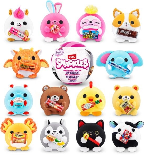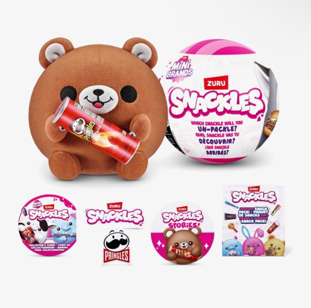 Snackles is de superzachte, ultraknijpbare knuffel die wordt geleverd in combinatie met je favoriete mini brands! Elke Snackle wordt geleverd met een origineel stripverhaal en stickers. Je hoeft geen honger te lijden, want er zijn 14 kleine Snackles om te verzamelen! Vind je de Haribo-Goldbear of de Subway-poolhond? Ga op jacht naar je favoriete smaakcombinatie met Snackles!