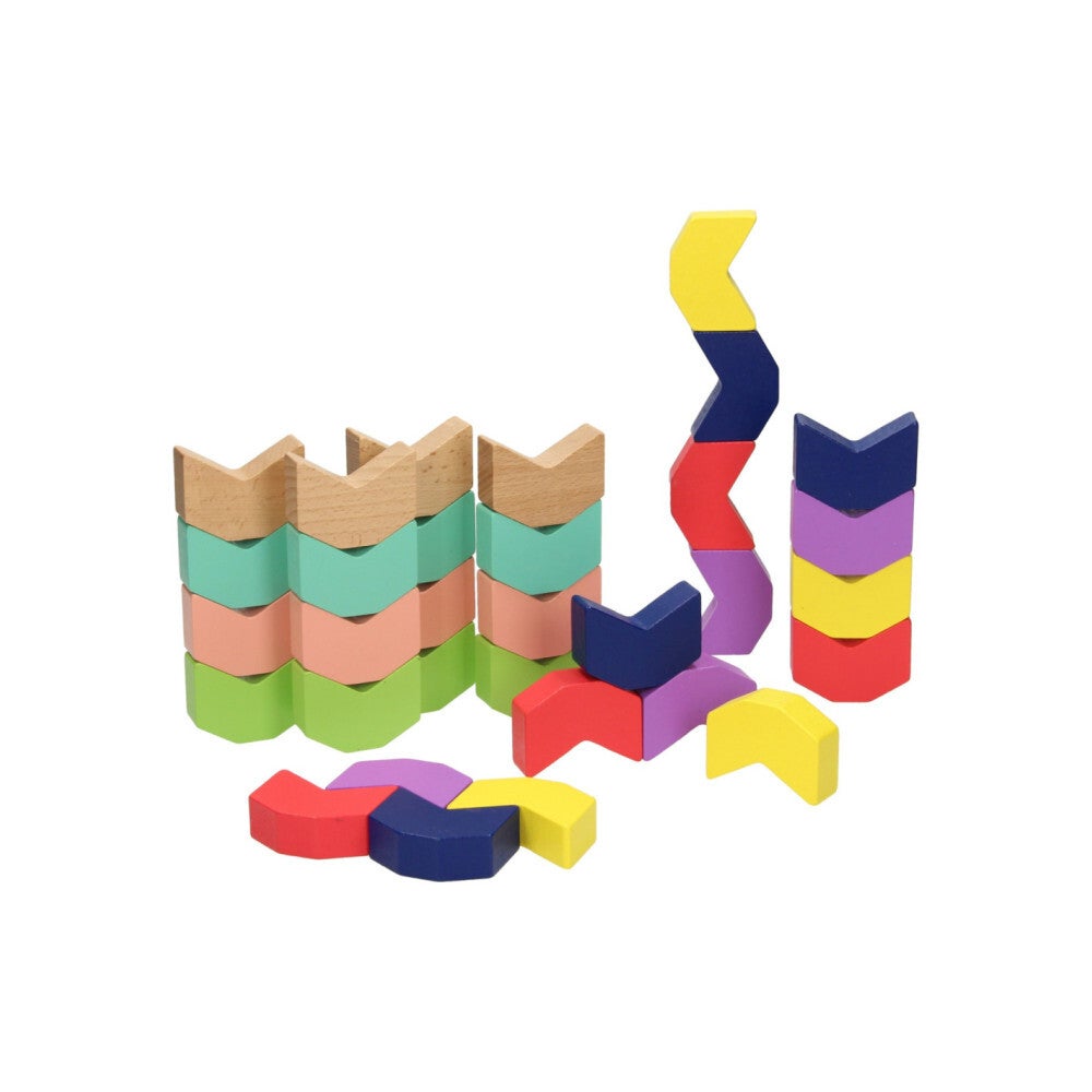 Doos met 32 houten regenboogblokken in een golfvorm. Een uitdagend bouwspel dat de creativiteit aanwakkert. Geschikt vanaf 2 jaar.Afmeting verpakking: 29 x 16 x 6 cm