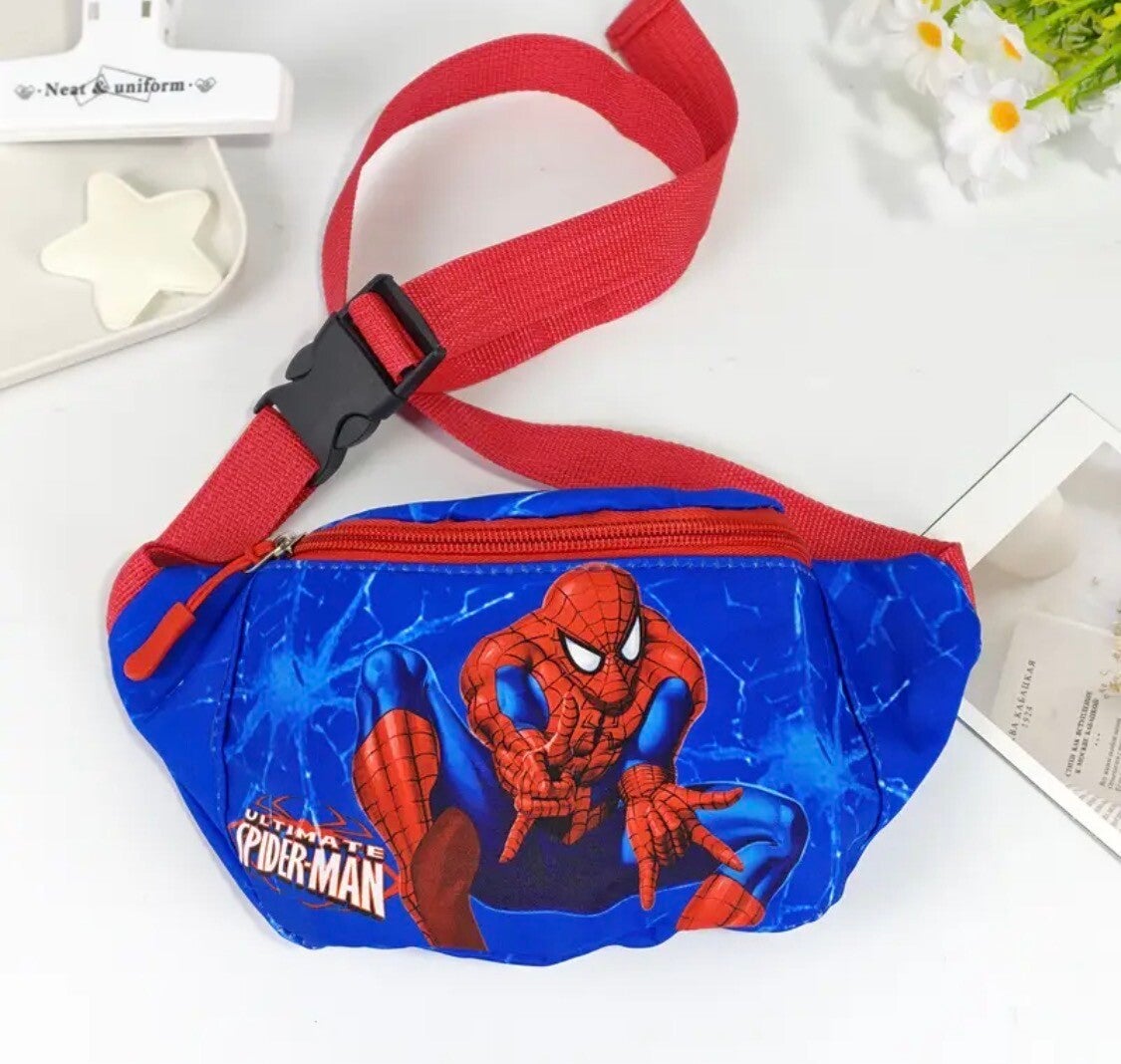 Spiderman tasje kan om de heupen maar ook om de schouders gedragen worden.
