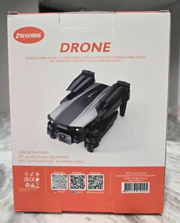 Gloednieuwe Swiss drone met camera, Perfect voor beginners en ervaren drone-piloten. Maak prachtige luchtfoto's en video's. Eenvoudig te bedienen met one-touch takeoff en landing. HD dual camera met 50X zoom. Optical flow hovering en trajectory flight.