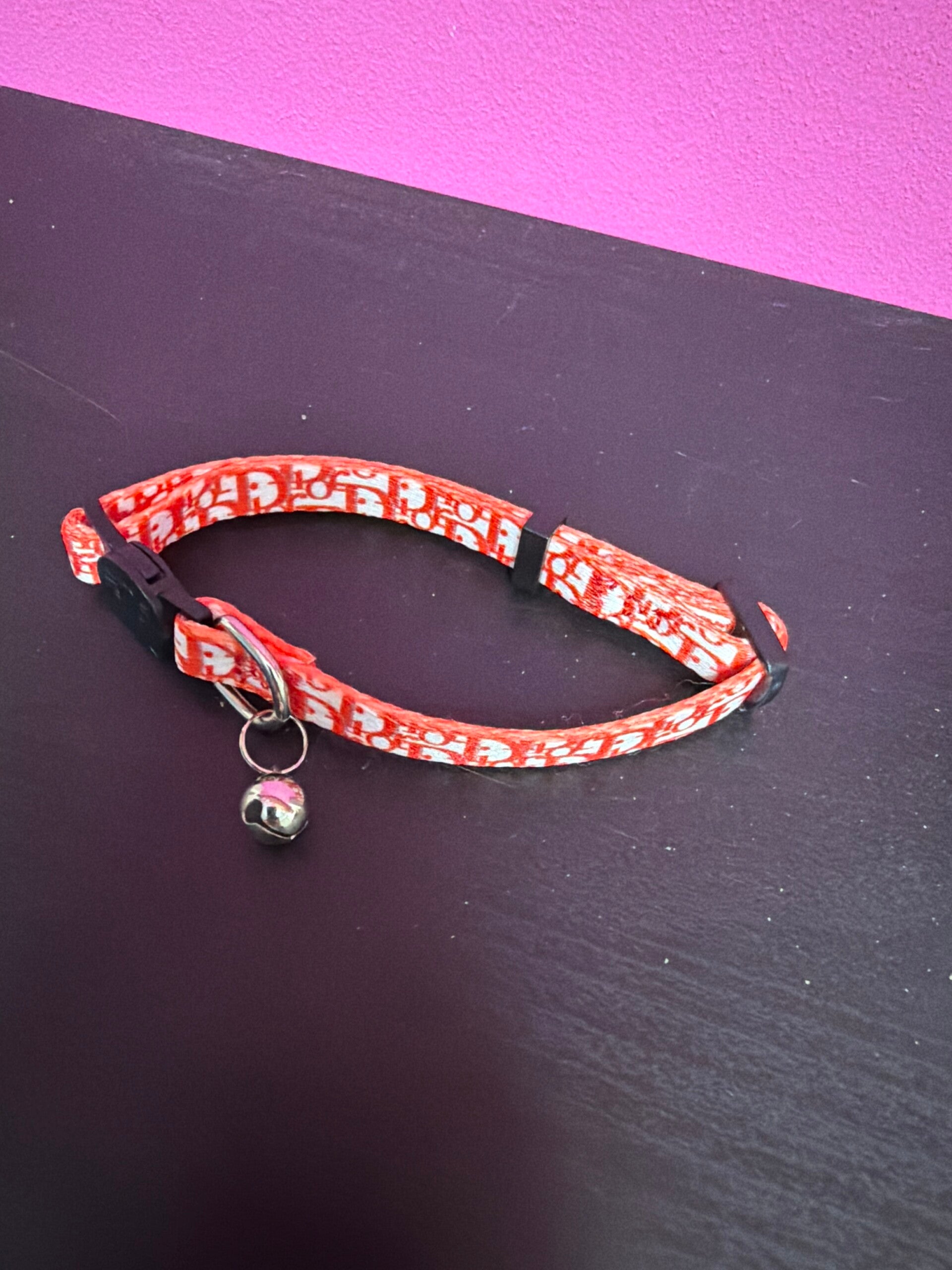 met belletje en veiligheid voor indien die buiten vast komt te zitten schiet het halsbandje los. verstelbaar